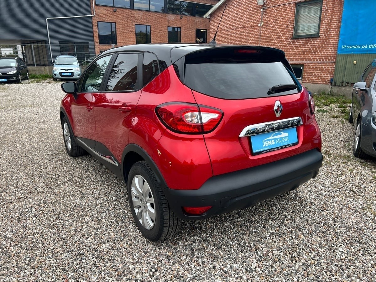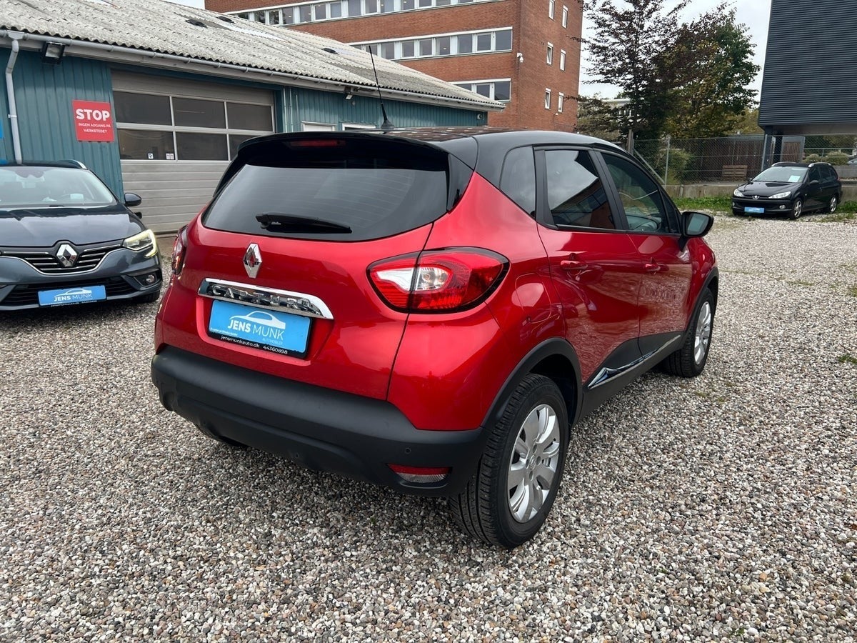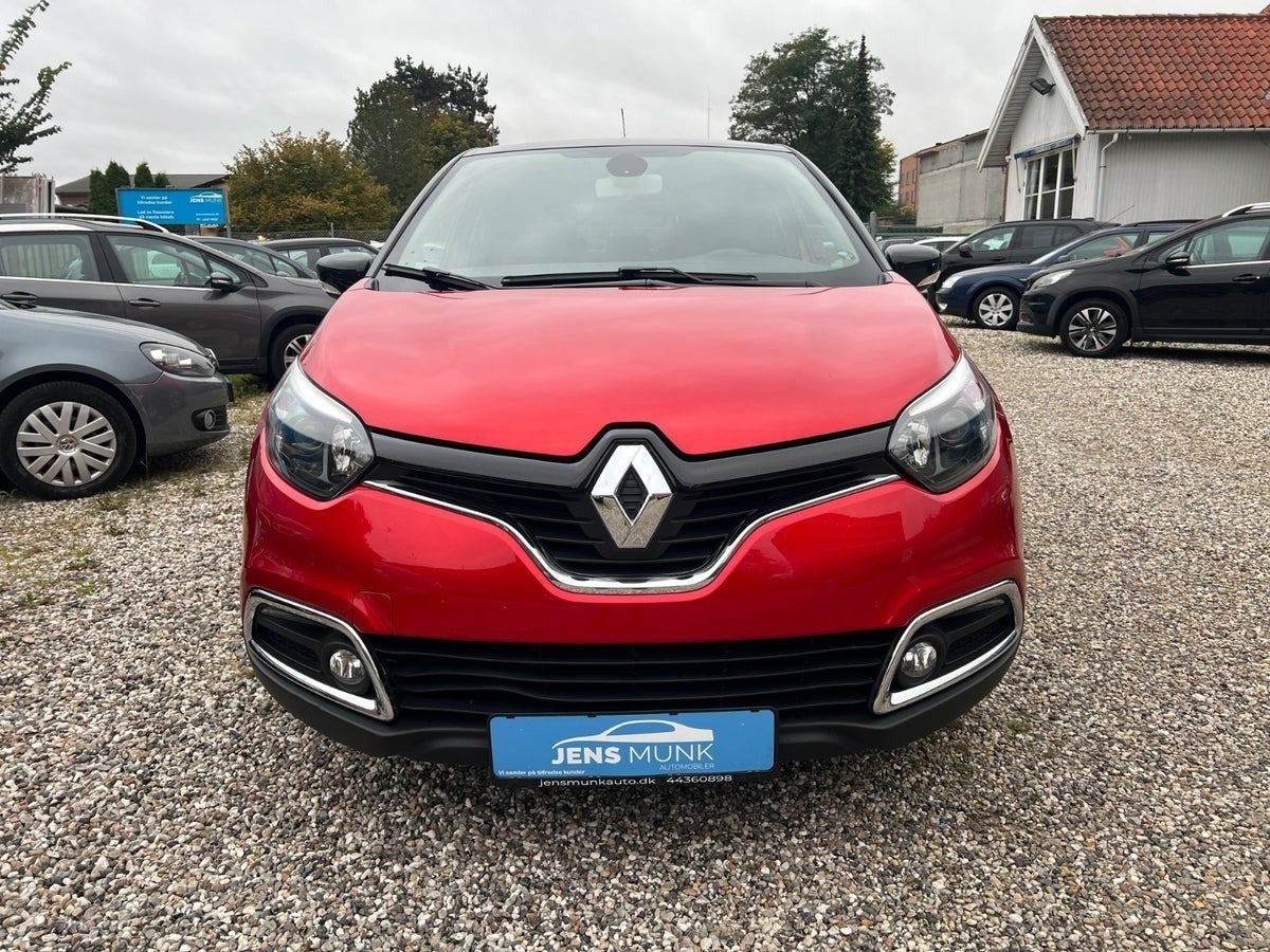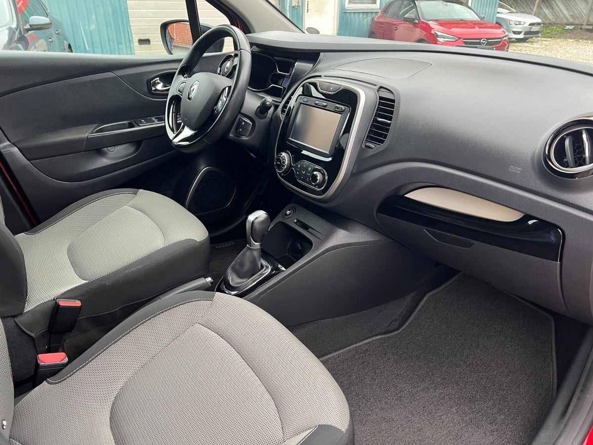 Flot og velholdt Renault Captur med automatgear, rød metallic lakering og sort tag. Bilen har fuld servicehistorik og fremstår som en både praktisk og stilfuld bil med masser af udstyr.